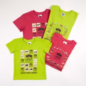 Veselá a barevná dětská trička pro kluky a holky. Ta nejlepší památka na naše zvířátka ze Safari Resortu. 100 % bavlna2 barevné varianty ( zelená a růžová )2 motivy ( zvířátka a pexeso) velikosti 4,6,8,12 letNákup za 299 Kč na....