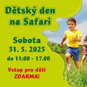 Dětský den na Safari Resortu – dobrodružství, zábava a dárky! Sobota 31. 5. 2025 | 11:00 - 17:00 | Safari Resort Hluboká u Borovan