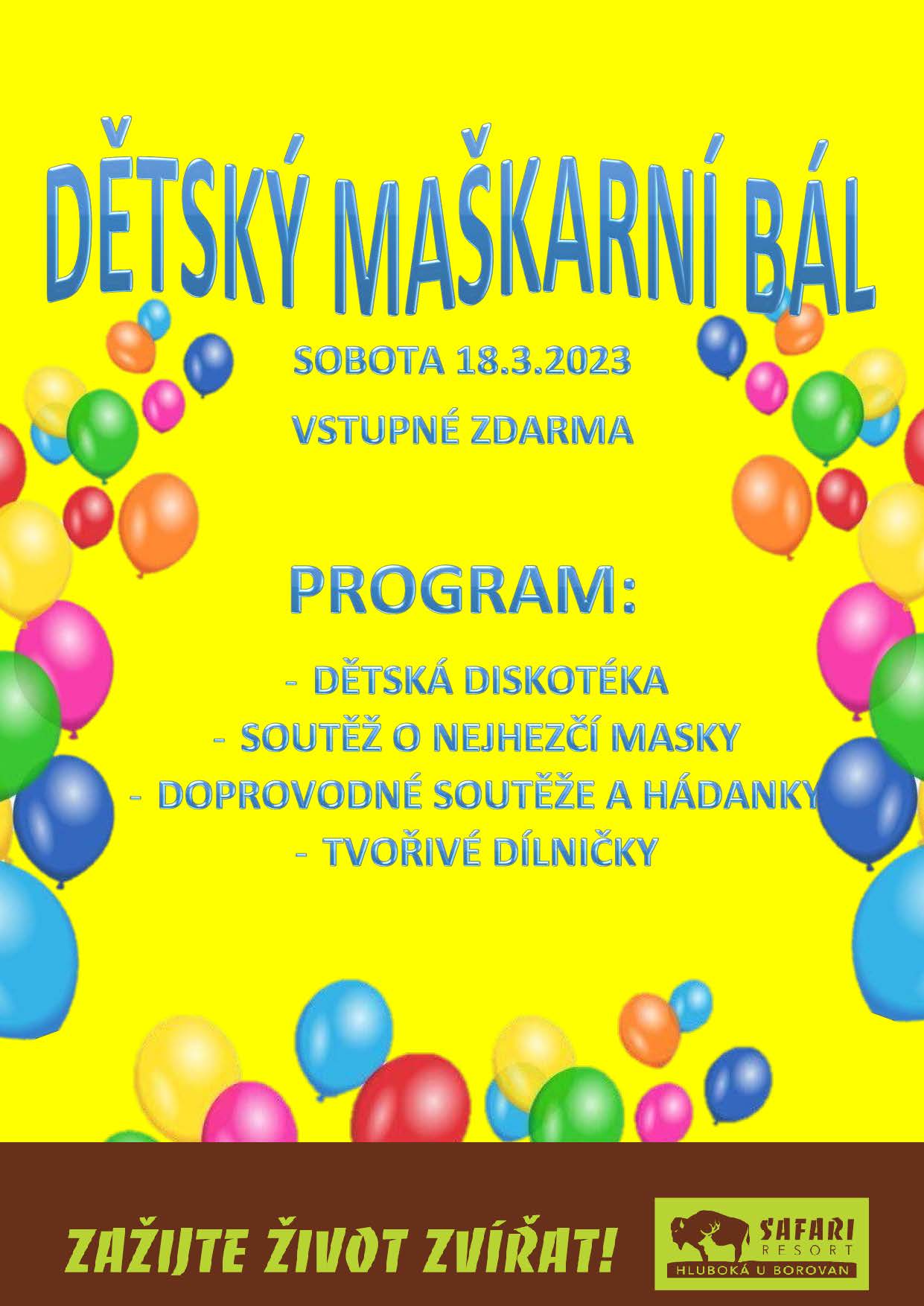 Zveme vás na maškarní bál k nám do Safari Resortu v sobotu 18.3.2023 od 13:00 hod. do 17:00 hod. Program po celý den a VSTUPNÉ ZDARMA !!!