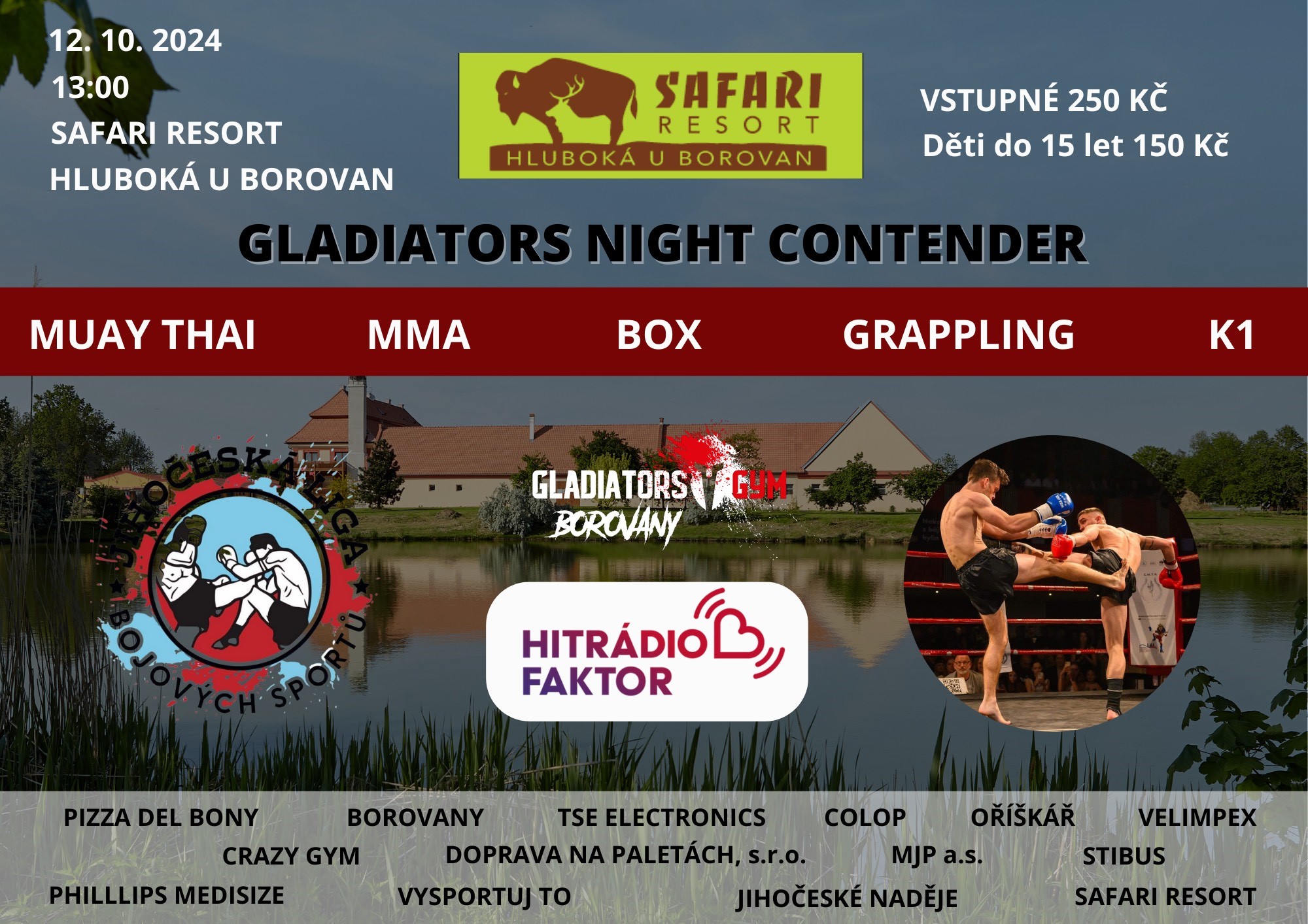 12.10. od 13 hod. se bude konat Gladiators night contender u nás na Safari.