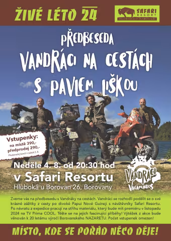 Zveme vás na Předbesedu s Vandráky na cestách s Pavlem Liškou, která se koná dne 4.8.2024 od 20:30 hodin.