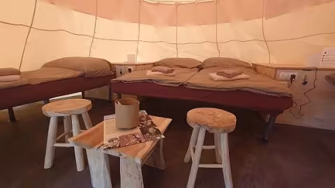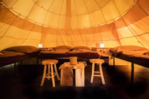 K dispozici je 13 plně vybavených teepee pro dvě nebo čtyři osoby.