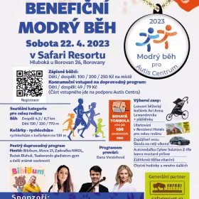 Srdečně zveme všechny běžecké nadšence – profíky i amatéry na XI. ročník Modrého běhu pro Autis Centrum, o.p.s., který se uskuteční v Safari Resortu v Hluboké u Borovan.